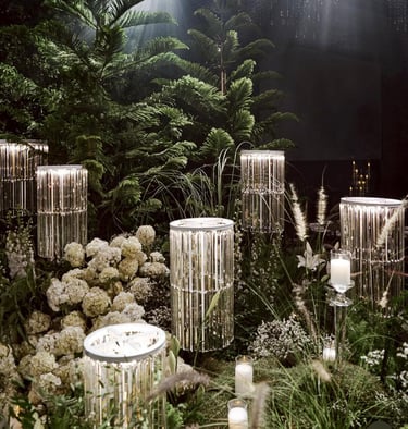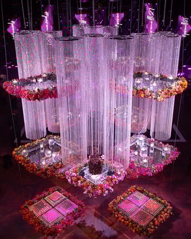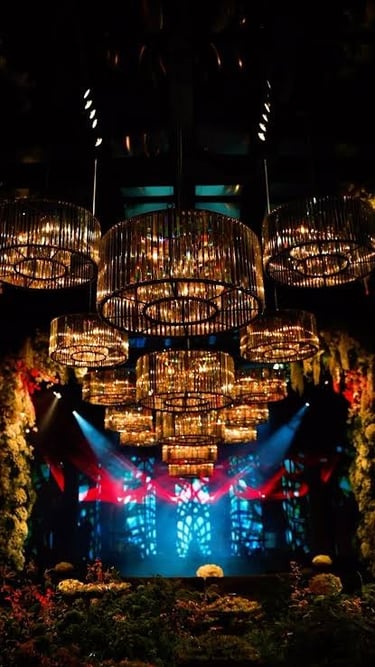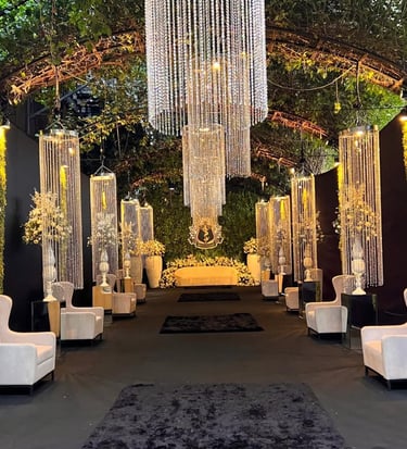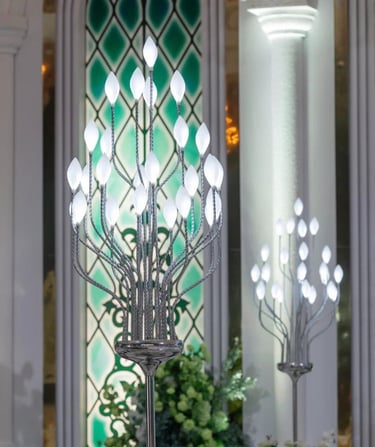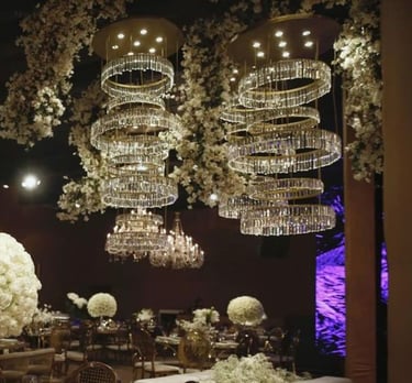 Explore our luxury chandeliers, event décor stands, and wedding lighting designs.